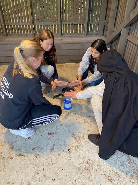 Elever fra JUS øver på førstehjelpDette var nok høydepunktet for elevene, som ga tilbakemeldinger om at det va kjekt med praktiske oppgaver hvor de fikk bevege seg og være aktive. Der fikk de prøve seg på førstehjelp, hvordan håndtere bortfall av strøm, reflektere over prioriteringer og øve seg på samarbeid.