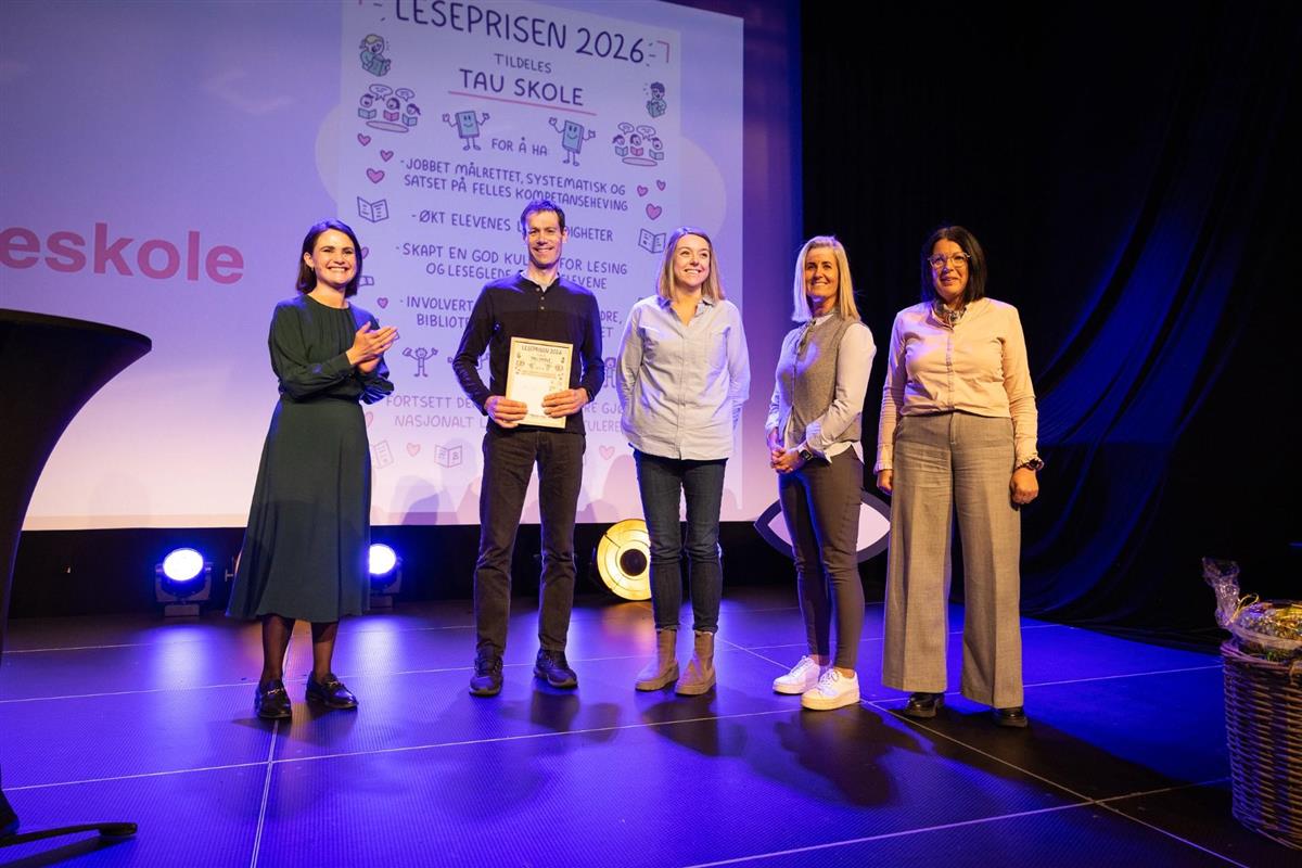 – Dette prosjektet har kommet for å bli på Tau skole! Tiltakene er ført inn i skolens årshjul, og personalet står sammen for å jobbe videre for et leseløft – både faglig, kulturelt og sosialt. Å i tillegg vinne leseprisen, gir stor motivasjon for videre, avslutter Vasstveit.