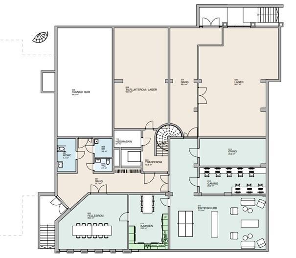 Romplan underetasje - fritidsklubb og lager